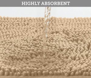 En el caso de la marca LuxUrux, no se queda atrás en cuanto a su tamaño generoso, por lo que también se adapta a muchas tasas. Mide 54.6 cm/21.5 pulgadas, 49.5 cm/19.5 pulgadas de ancho. El material es igualmente de felpilla gruesa, muy absolvente, de fácil secado y de alta densidad que ayudan a evitar que el suelo se llene de agua cuando sales de la ducha. La felpa mide 2.54 cm/1 pulgada de profundidad. Puedes lavarlo en lavadora siempre con agua fría. Y muy importante, su material es bastante duradero.